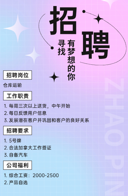 艾伯塔招聘 - 仓库物流
