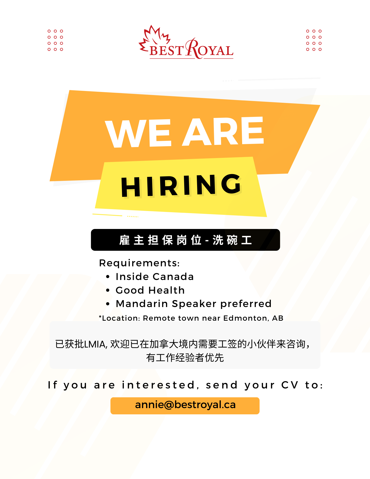 艾伯塔招聘 - 餐饮 酒店 超市